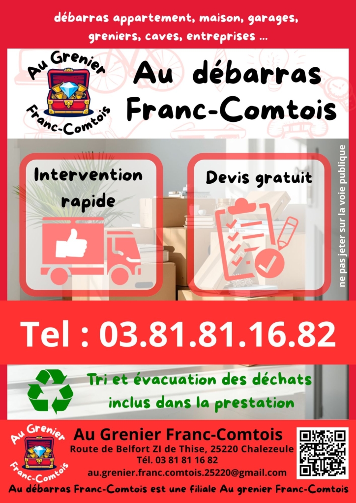 Au Vide Grenier Besançon est une entreprise qui propose une gamme de services d’achat et de vente de biens d’occasion. Si vous cherchez à désencombrer votre maison, l’entreprise propose un service de débarras rapide et complet, comprenant l’enlèvement des objets, le recyclage des déchets et le nettoyage.